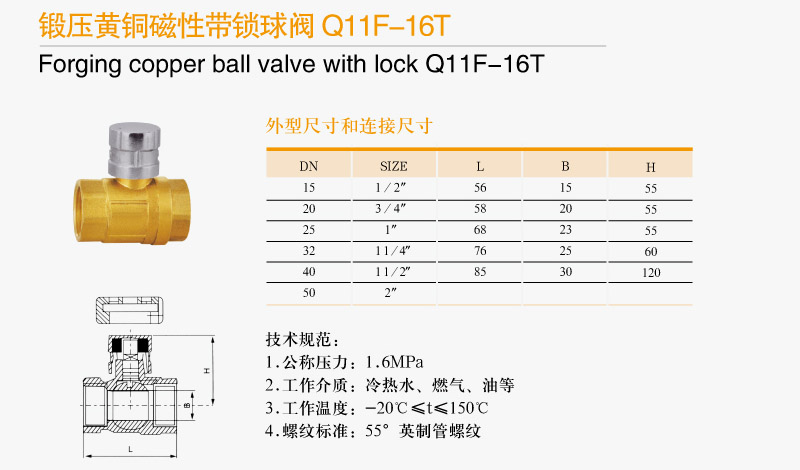 鍛壓黃銅磁帶帶鎖球閥 Q11F-16T