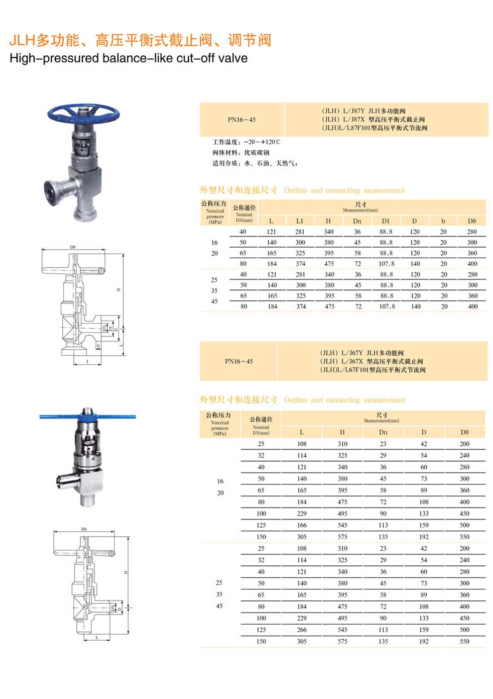 JLH多功能、高壓平衡式截止閥、調(diào)節(jié)閥