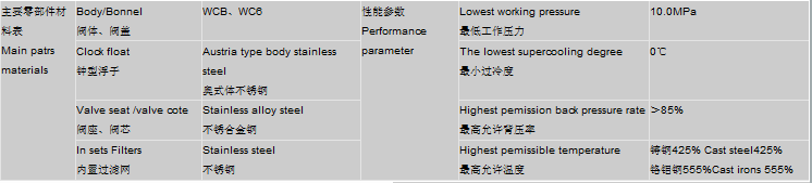 Structures:1.This kind of trap adopts two valve bases;bath can meet the need of high pressure ,large discharging amount and small volume