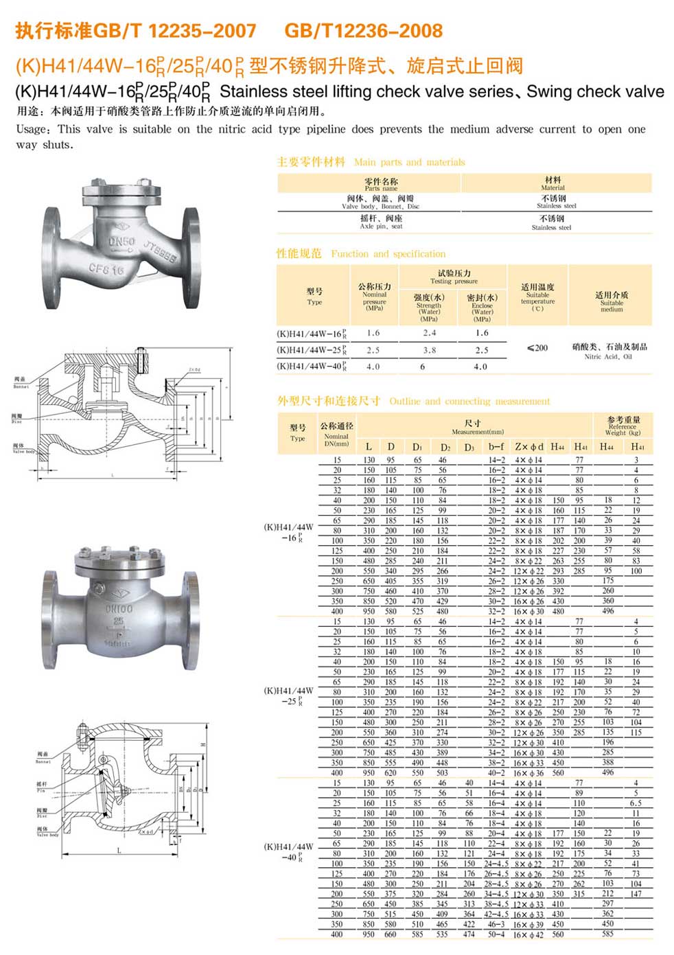 不銹鋼升降式樣、旋啟式止回閥