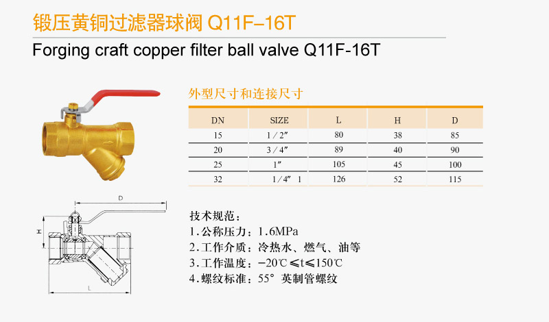 鍛壓黃銅過濾器球閥 Q11F-16T