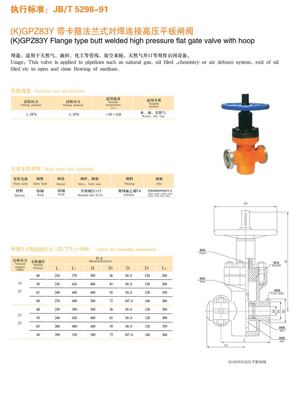 帶卡箍法蘭式對焊連接高壓平板閘閥...