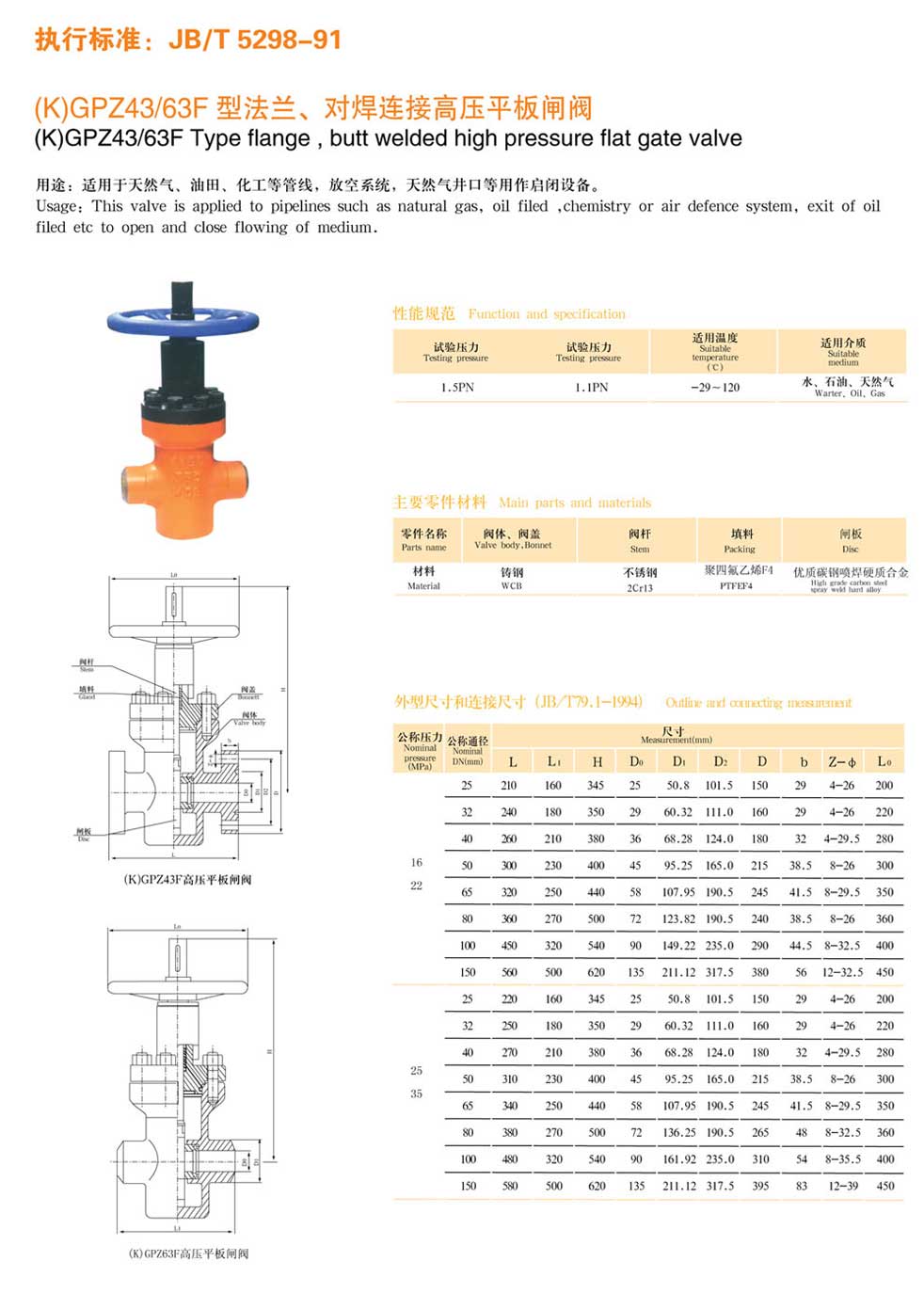法蘭、對焊連接高壓平板閘閥