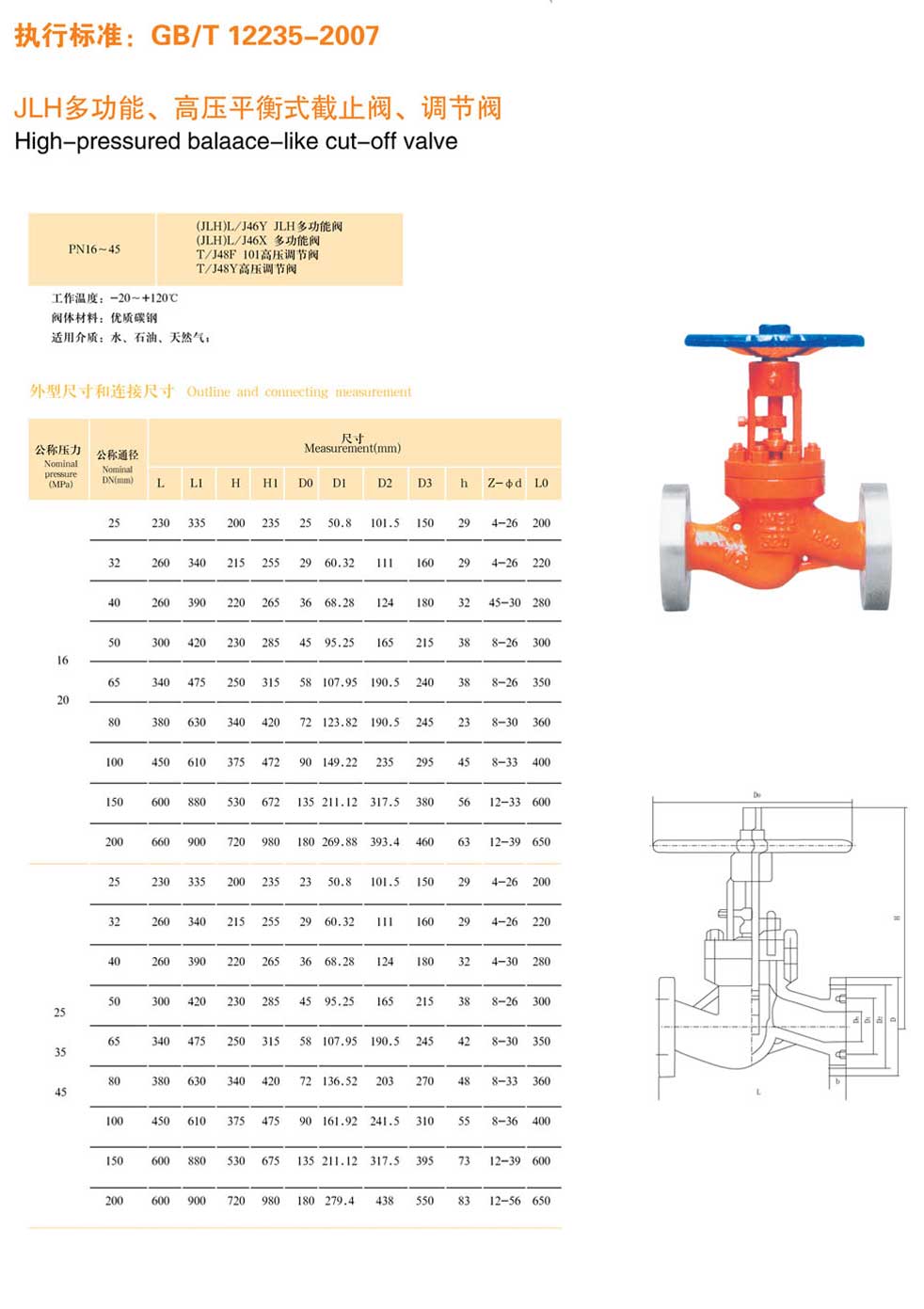 JLH多功能、高壓平衡式截止閥、調(diào)節(jié)閥